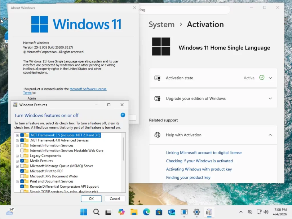 Windows Features can be Modified , Install more Languages , Protection against Viruses